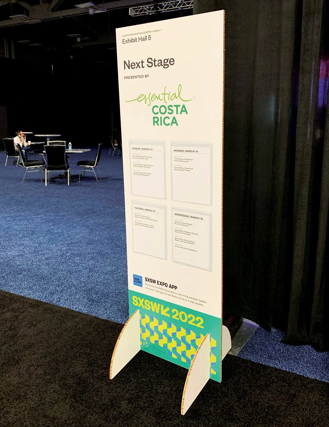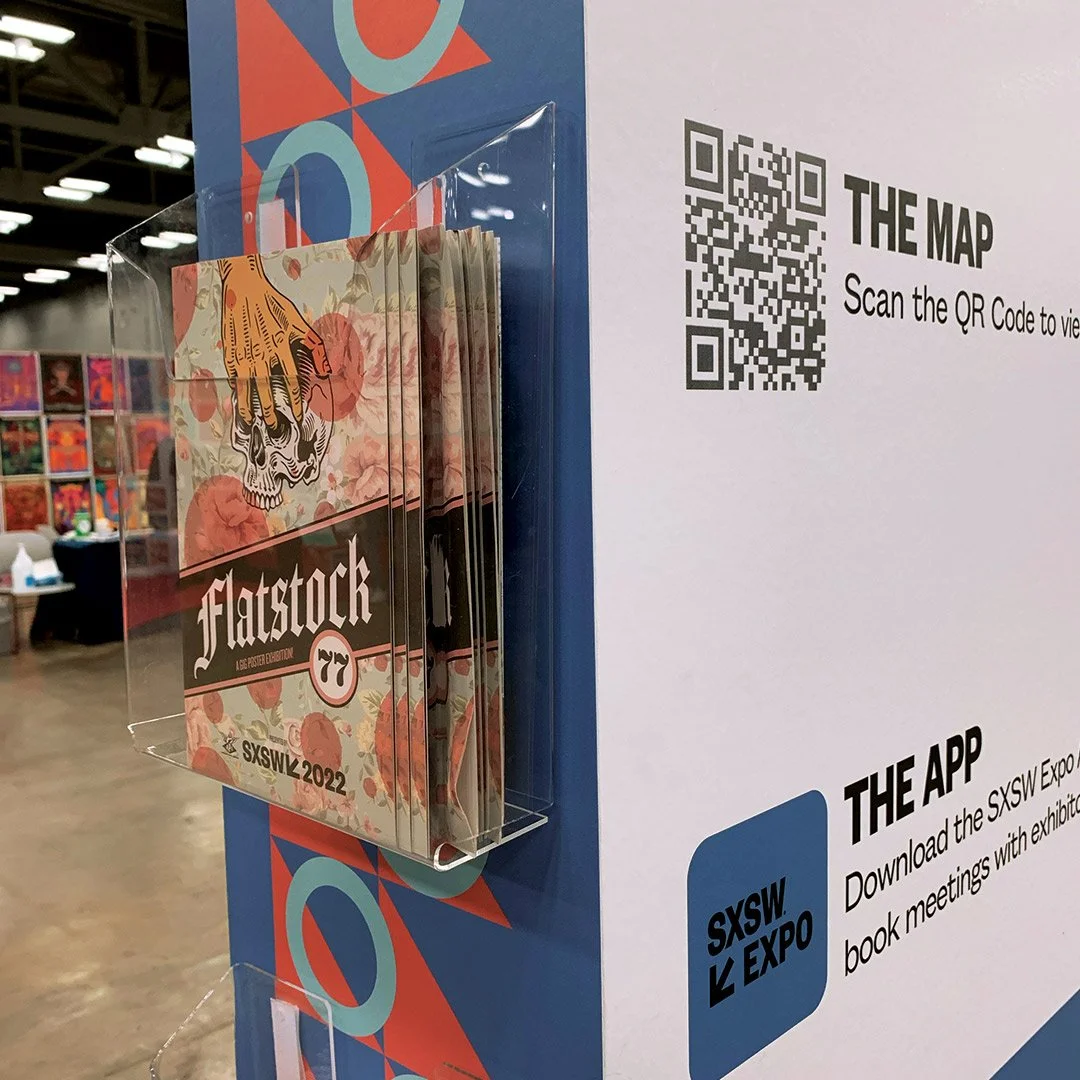 These tower units are large, 10 foot tall signs that were placed throughout the Austin Convention Center. They provided event hours, descriptions of particular Expo Features, and each tower had a unique QR code that would lead guests to a digital map of the expo floor.